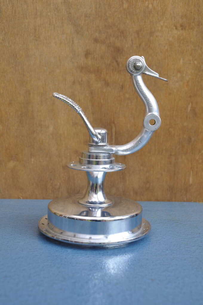 Deze twee sierlijke zwanen zijn gemaakt van oude zeldzame Campagnolo fietsonderdelen. Prachtige kleine (fiets)kunstwerken! De Afmeting van versie 1 zijn: 12 cm diameter en 17 cm hoog. Versie 2: 12 cm diameter en 16 cm hoog. Ze kosten 150,- euro per stuk. Mail bij interesse cyclingartisthubert@gmail.com